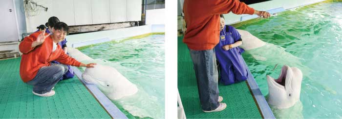 ・ベルーガへのタッチ(記念写真付)および給餌体験